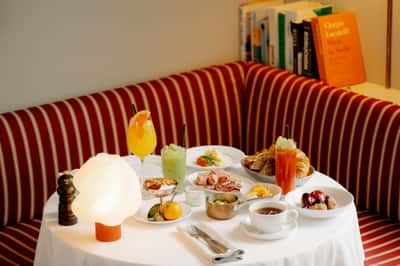 Der er højt til loftet i de gamle lokaler, og musikken emmer af Frederiksberg-elegancen. Indretningen er inspireret af den klassiske herskabslejlighed med lyse vægge, charmerende krummelurer og Wegners klassiske Y-stole. Der er plads til 110 gæster i restauranten og lige så mange udenfor, når vejret tillader det.
