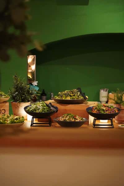 På Food Club er der rigeligt af alt – bortset fra madspild. Der er altid noget for enhver smag. Både kød, fisk og vegetarisk. Hovedessensen er grøntsager. Bordet er jeres så lang tid I ønsker. Alt er inkluderet – også drikkevarer.